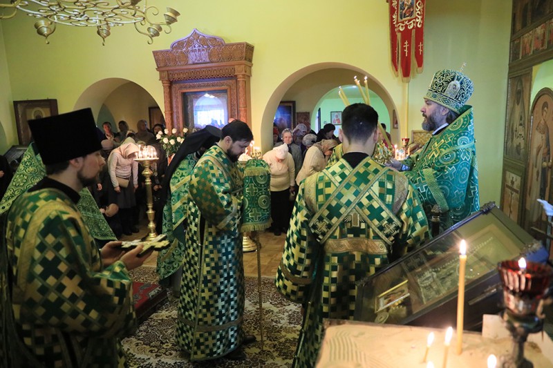 Преосвященнейший владыка совершил причащение и поздравил настоятеля и приход с днем небесного покровителя их храма. В архипастырском слове епископ Симон напомнил о духовных подвигах святой Ксении и о важности нам христианам обращать свои молитвы ко святым Божиим угодникам.