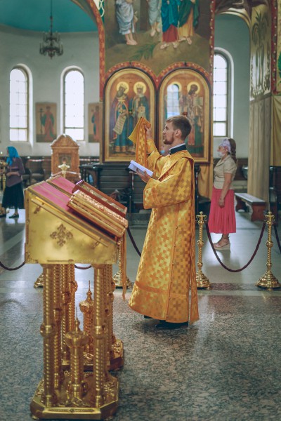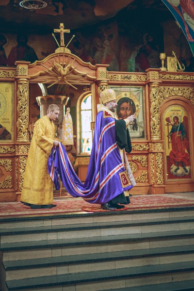 В памятный для епархии день Преосвященнейший епископ Симон совершил благодарственный молебен в Покровском кафедральном соборе г. Шахты. Вместе с архипастырем молились настоятель собора иерей Александр Теличкин, диакон Даниил Зырянов и прихожане главного храма епархии.