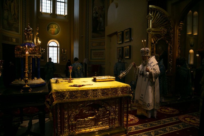 Песнопения богослужения исполнил хор собора под управлением протодиакона Владимира Зубрицкого. Проповедь перед Причастием произнес протоиерей Сергей Зрянин.