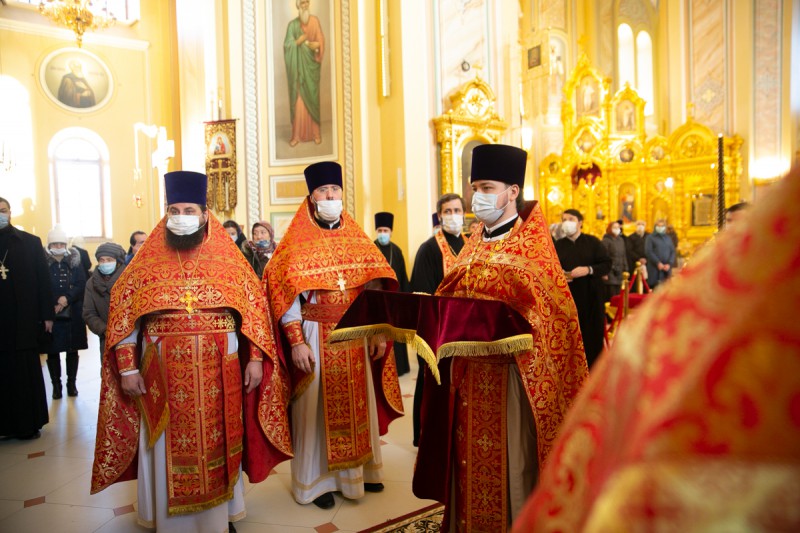 Песнопения богослужения исполнил хор собора под управлением протодиакона Владимира Зубрицкого. За Литургией молились настоятельница Иверского женского монастыря игумения Рахиль (Ковалева) с сестрами обители, братия Донского Старочеркасского Ефремовского мужского монастыря, прихожане храма и паломники.