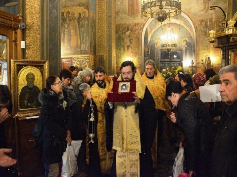Крестным ходом мощи святого были перенесены в кафедральный собор великомученицы Недели (Кириакии), где перед ними был совершен краткий молебен, который возглавил епископ Богородский Антоний в сослужении епископа Браницкого Григория и клириков храмов болгарской столицы.