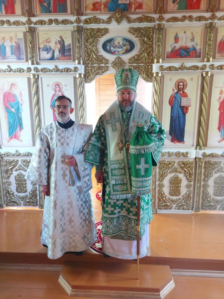 В алтаре правящий архиерей духовно напутствовал диакона Бориса и благословил его на прохождение богослужебной практики в Покровском кафедральном соборе.