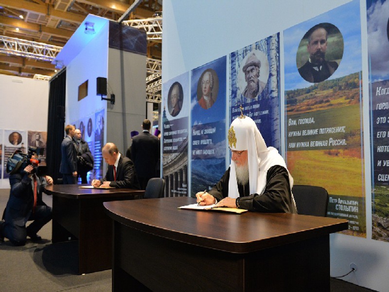 4 ноября 2016 года, в праздник Казанской иконы Божией Матери и День народного единства, Президент Российской Федерации В.В. Путин и Святейший Патриарх Московский и всея Руси Кирилл после открытия и освящения памятника святому равноапостольному князю Владимиру на Боровицкой площади в Москве возглавили церемонию открытия XV церковно-общественной выставки-форума «Православная Русь ― к дню народного единства» в Центральном выставочном зале «Манеж».