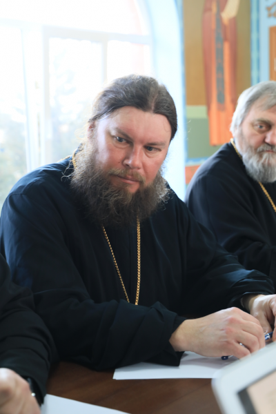 В работе приняли участие секретарь Шахтинской епархии иерей Александр Теличкин, председатель епархиального отдела по церковной благотворительности и социальному служению иерей Владислав Касьянов, председатель епархиального отдела по приграничному сотрудничеству протоиерей Роман Амплеев, благочинный архиерейских подворий епархии протоиерей Александр Маликов, благочинные церковных округов Шахтинской епархии.