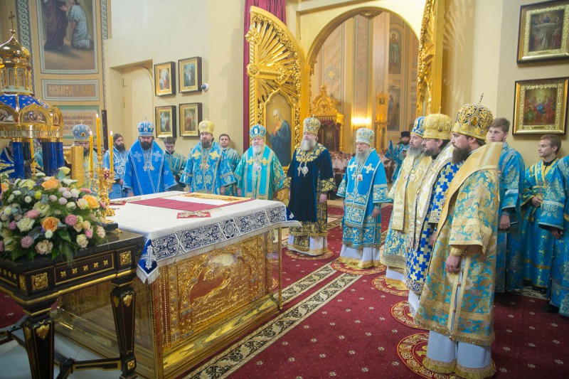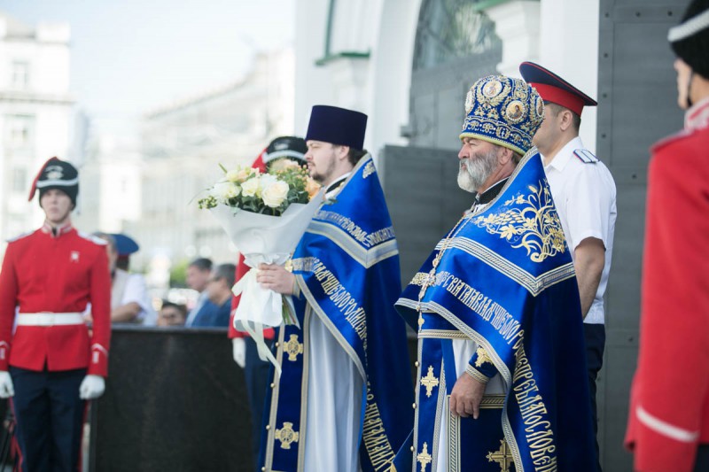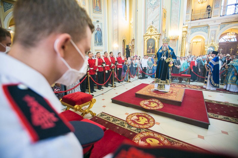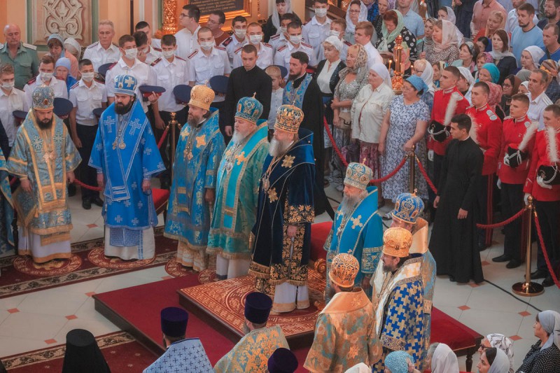 Его Высокопреосвященству сослужили Глава Ставропольской митрополии, Председатель Синодального комитета по взаимодействию с казачеством митрополит Ставропольский и Невинномысский Кирилл, Глава Мордовской митрополии митрополит Саранский и Мордовский Зиновий, Глава Кубанской митрополии митрополит Екатеринодарский и Кубанский Григорий, архиепископ Элистинский и Калмыцкий Юстиниан, архиепископ Пятигорский и Черкесский Феофилакт, архиепископ Якутский и Ленский Роман, епископ Волгодонский и Сальский Антоний, викарий Ростовской епархии епископ Таганрогский Артемий, настоятель Ростовского кафедрального собора, члены Епархиального совета Ростовской-на-Дону епархии, благочинные округов города Ростова-на-Дону, исполняющий обязанности наместника Донского Старочеркасского Ефремовского мужского монастыря, прибывшее со своими архипастырями на торжества духовенство.