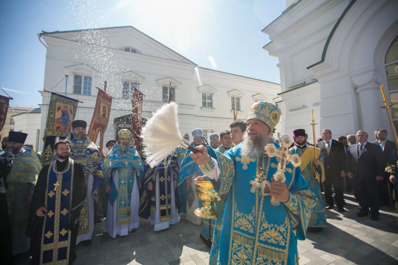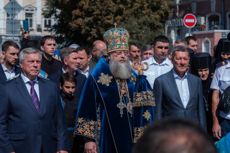 По окончании богослужения был совершен крестный ход с Донским образом Пресвятой Богородицы на Соборную площадь к памятнику святителя Димитрия, митрополита Ростовского. По окончании крестного хода с приветственным словом к землякам и гостям Дона обратился Губернатор Ростовской области Василий Голубев, который напомнил о том, что Божия Матерь всегда охраняла Донскую землю во время различных испытаний. Также он подчеркнул, что сегодня народу необходима вера и духовное осмысление происходящих в мире событий.