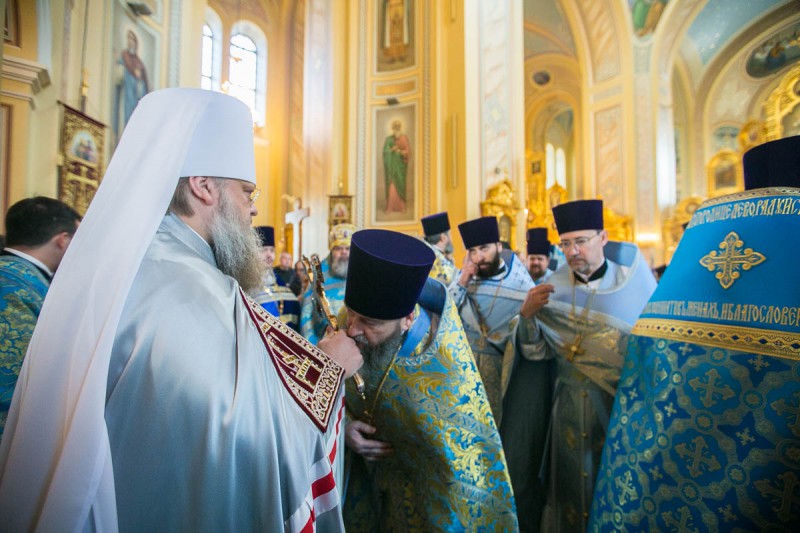 В своем архипастырском слове митрополит Меркурий поприветствовал присутствующих с праздником. Обратившись к евангельскому чтению, в котором говорится о встрече Христа с неким юношей, который вопросил Господа: "Что сделать мне доброго, чтобы иметь жизнь вечную?" (Мф., 19:16). На это Христос ответил ему: "Если хочешь быть совершенным, пойди, продай имение твое и раздай нищим; и будешь иметь сокровище на небесах; и приходи и следуй за Мною" (Мф., 19:21). "Многие вещи, к которым мы привязываемся здесь, на земле, делают нас несвободными. Но Спаситель призвал нас быть богоподобными: не просто следовать за Ним, а уподобиться Ему. Однако если руки и ноги наши связаны чрезмерными заботами и суетными попечениями, и мы не находим места для Бога в своем сердце, то, безусловно, ни о какой свободе, даже внешней, говорить не приходится. Мы становимся людьми порабощенными. В таком случае у нас нет свободного разума, свободной воли, мы не в состоянии свободно действовать. А сегодня эта свобода нам нужна как никогда", - отметил Глава митрополии.