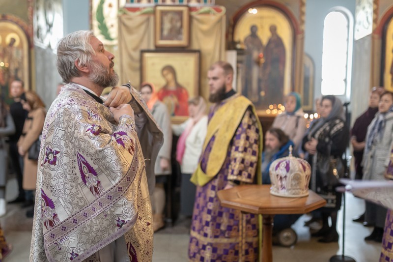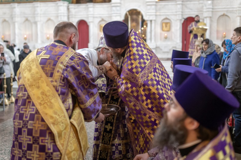 При чтении диаконом Евангелия от Иоанна, повествующего об умовении ног Спасителя Своим ученикам, архипастырь снял с себя верхнюю часть облачения, препоясался лентием (длинным белым полотенцем) и по очереди умыл ноги одиннадцати священникам. Двенадцатый священнослужитель, по чину символизирующий апостола Петра, сначала отказывается от умовения, но потом, после евангельских слов «Аще не умыю тебе, не имаши части со Мною», просит омыть не только его ноги, но и руки и главу, затем произносится ответ Спасителя: «Измовенный не требует, токмо нозе умыти…».