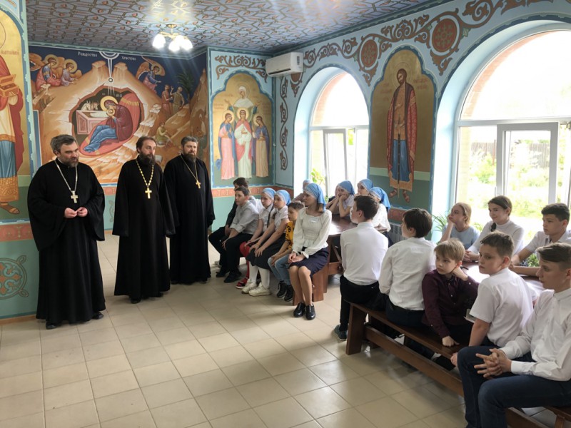 Всех детей радушно встретил и проводил настоятель подворья протоиерей Александр Маликов, который также организовал ознакомительную экскурсию по комплексу церковного подворья старинной казачьей станицы Манычской.