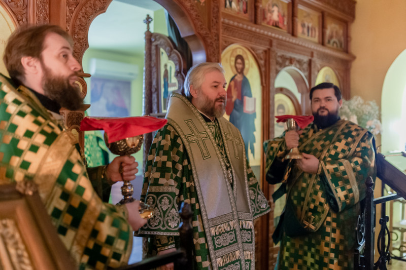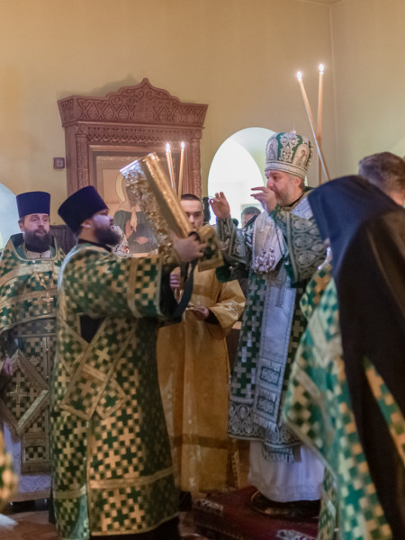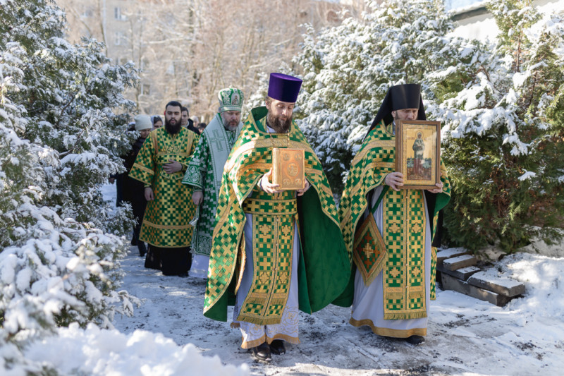 По завершении Литургии духовенство и прихожане во главе с архипастырем совершили крестный ход, прославляя небесную покровительницу прихода.