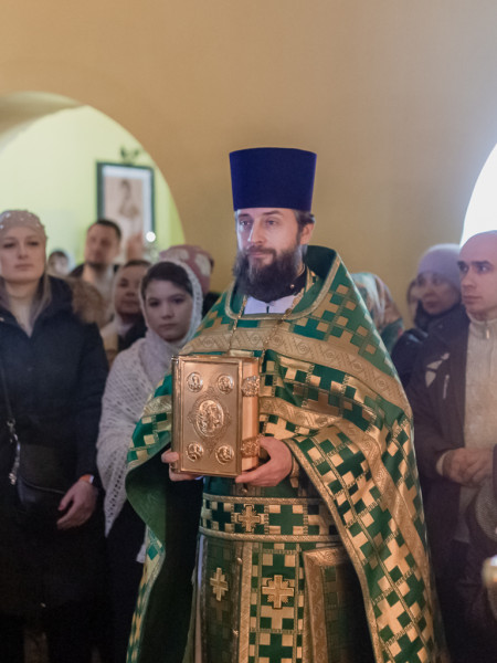 Молитвенное торжество возглавил епископ Шахтинский и Миллеровский Симон, которому сослужили благочинный приходов Александровск-Грушевского округа протоиерей Сергий Яценко, настоятель храма святой Ксении иеромонах Герман (Руденко), иерей Михаил Дубянский, диакон Трофим Осяк и иеродиакон Флавиан (Васильев).