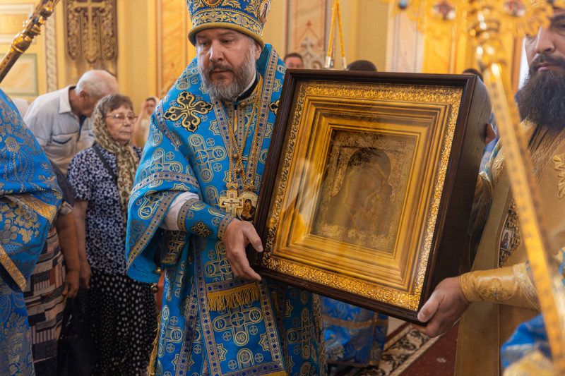 По окончании богослужения молящимся были розданы памятные иконы Божией Матери «Казанская» с благословением Святейшего Патриарха Московского и всея Руси Кирилла.