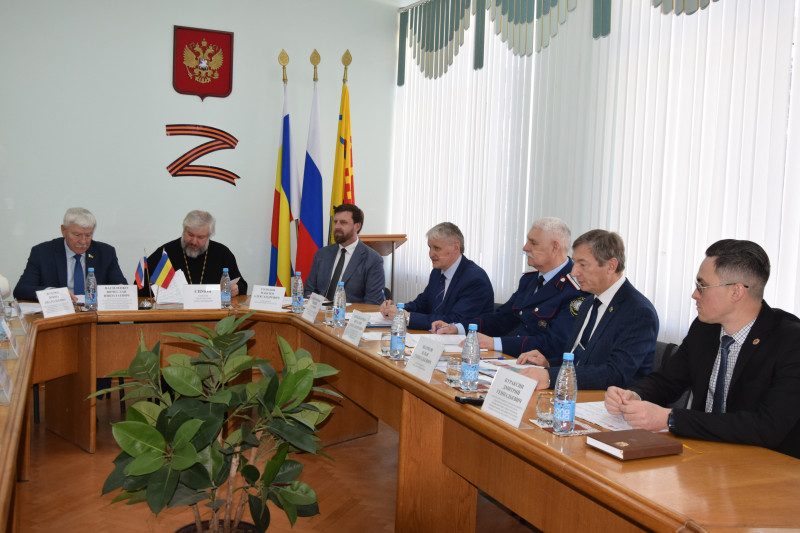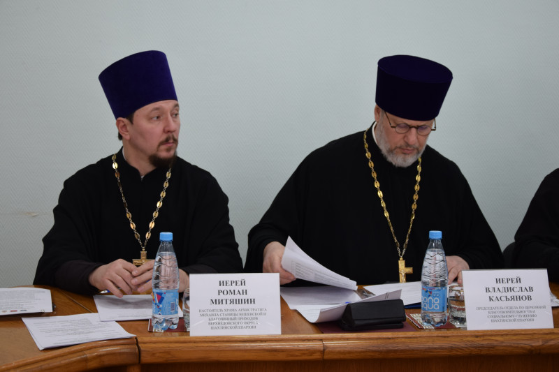 В совещании приняли участие епископ Шахтинский и Миллеровский Симон, заместитель председателя Законодательного Собрания Ростовской области – председатель комитета по аграрной политике, природопользованию, земельным отношениям и делам казачества Вячеслав Николаевич Василенко, депутат Законодательного Собрания Ростовской области Ирина Анатольевна Жукова, председатель Городской Думы г. Шахты Максим Александрович Голодов, заместитель главы администрации Шолоховского района по социальным вопросам Сергей Петрович Благородов, секретарь Шахтинской епархии иерей Александр Теличкин, руководитель отдела религиозного образования Шахтинской епархии протоиерей Сергия Яценко, руководитель молодежного отдела протоиерей Александр Маликов, руководитель отдела по церковной благотворительности и социальному служению иерей Владислав Касьянов, благочинный приходов Верхнедонского округа иерей Роман Митяшин, древлехранитель Шахтинской епархии Илья Геннадиевич Шарков.