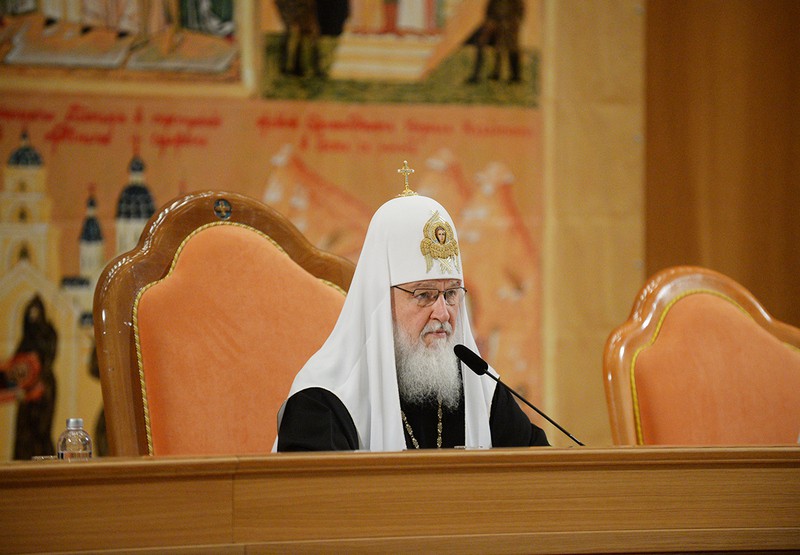 Святейший Патриарх Кирилл выступил на конференции с основным докладом.