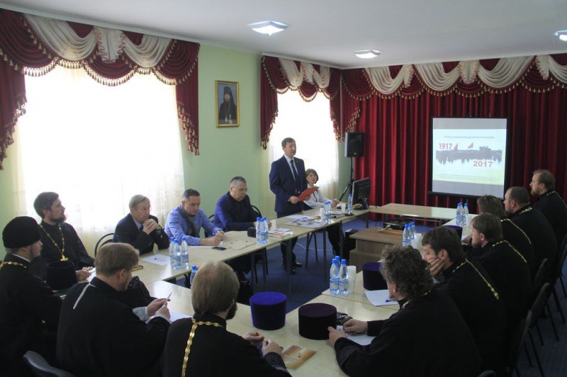 По благословению Преосвященнейшего Симона, епископа Шахтинского и Миллеровского, 1 ноября в Духовно-просветительском центре при Покровском кафедральном соборе г. Шахты прошёл епархиальный круглый стол, посвящённый 100-летней годовщине революционных потрясений в России.