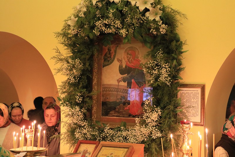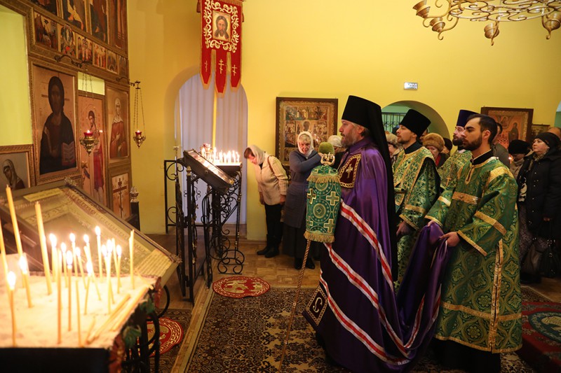 По завершении Литургии духовенство соборно совершило молебен перед иконой святой покровительницы храма, после чего архипастырь обратился к молящимся с поздравлением и духовным наставлением.