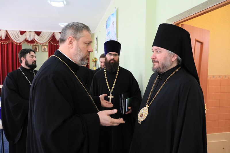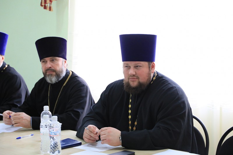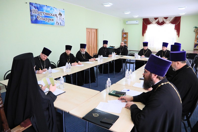 Основой заседания стало решение вопросов, которые поставил Архиерейский совет Донской митрополии перед епархиями. В список повестки включены обязательное проведение огласительных бесед и катехизаторские курсы для работников свечных лавок. Епископ Симон отмечает, что зачастую первый человек, который встречается людям в храме – это церковный работник, который, конечно, должен уметь дать ответ на распространенные вопросы о вере, Церкви, таинствах. «…будьте всегда готовы всякому, требующему у вас отчета в вашем уповании, дать ответ с кротостью и благоговением» (Первое послание Петра. Глава 3, ст. 15). Архиерей дал поручение подготовить план проведения курсов и подобрать актуальные темы для обучения.