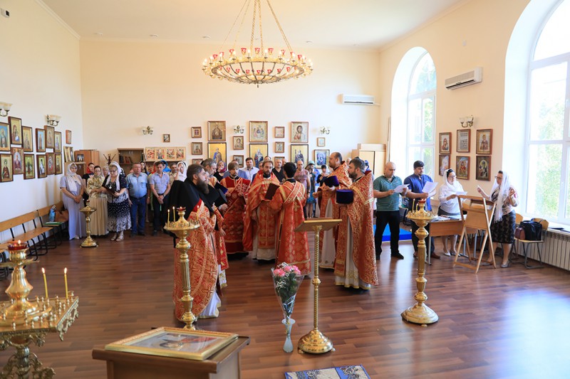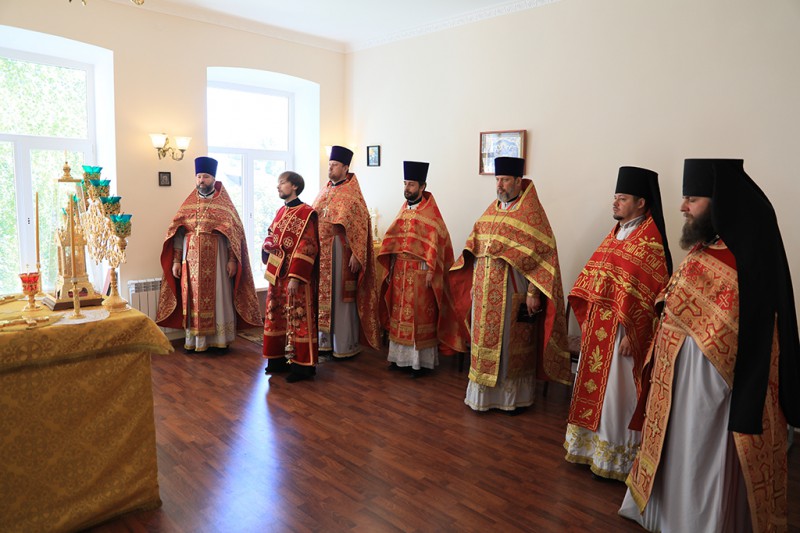 Праздничное богослужение совершили председатель епархиального отдела образования Шахтинской епархии протоиерей Сергий Яценко; исполняющий обязанности заведующего кафедры «Православная культура и теология» иерей Владислав Касьянов; настоятель храма при институте, старший преподаватель кафедры протоиерей Роман Амплеев; настоятель храма в честь иконы Божией Матери Всех скорбящих радосте г. Красный Сулин иеромонах Никон Синюшкин; настоятель храма в честь иконы Божией Матери Одигитрия пос. Таловый иерей Андрей Ковалев; настоятель храма в честь иконы Божией Матери Взыскание погибших пос. Сидорово-Кадамовский иеромонах Варнава (Максименко); клирик Покровского кафедрального собора г. Шахты иеродиакон Флавиан (Васильев).
