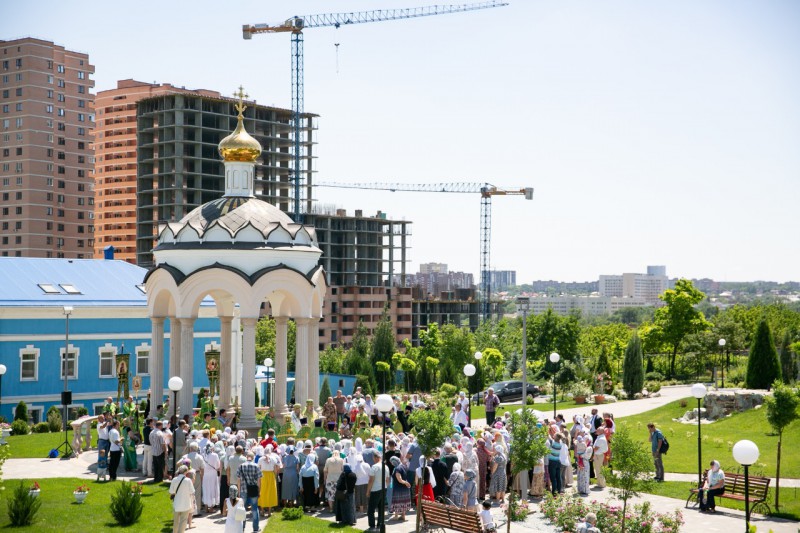 По окончании богослужения состоялся крестный ход к водосвятной часовне в честь Святого Духа, где Глава Донской митрополии совершил чин освящения часовни.