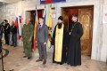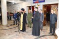 Для укрепления духа мобилизованных священнослужители совершили молитву. Протоиерей Сергий обратился к мобилизованным с напутственном словом, преподал благословение и окропил призывников святой водой.