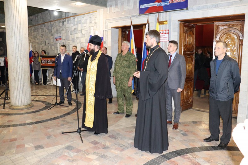 Благочинный приходов Александровск-Грушевского и Нижнедонского округов протоиерей Сергий Яценко и настоятель храма святителя Николая Чудотворца пос. Аютинский иерей Иоанн Трофимов побывали в мобилизационном пункте, пообщались с мобилизованными, их родственниками и теми, кто был рядом в этот день.