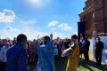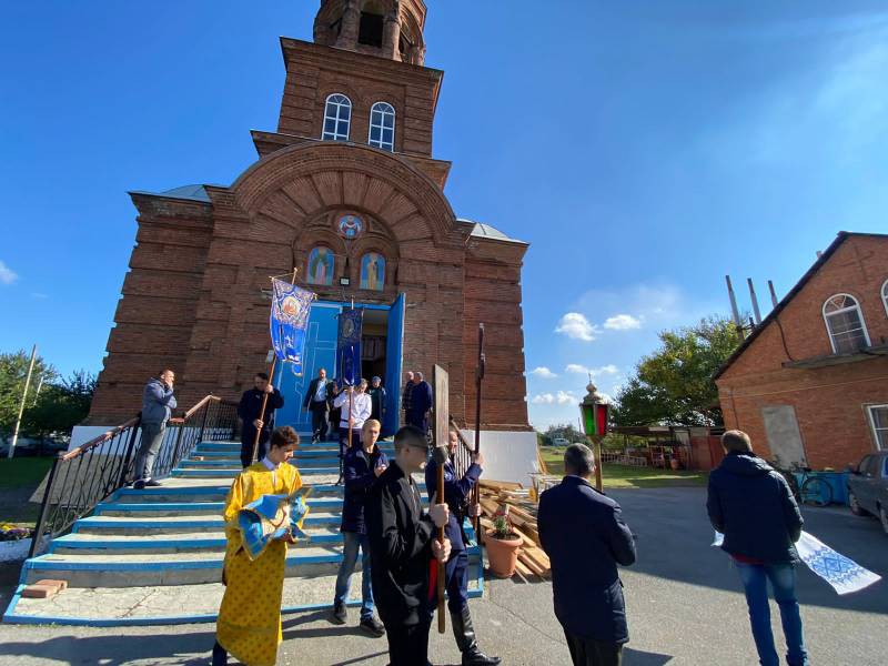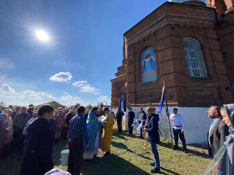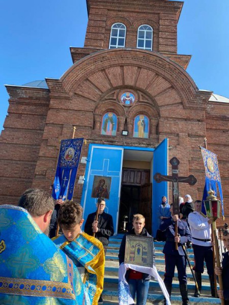 После литургии, традиционно был совершен Крестный ход. Священник поздравил молящихся с престольным праздником и днем Покрова Божией Матери.