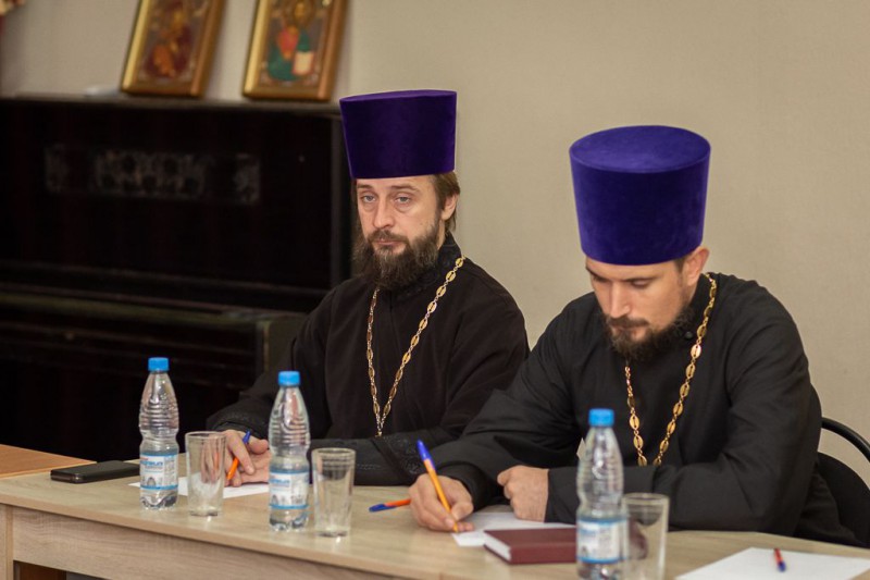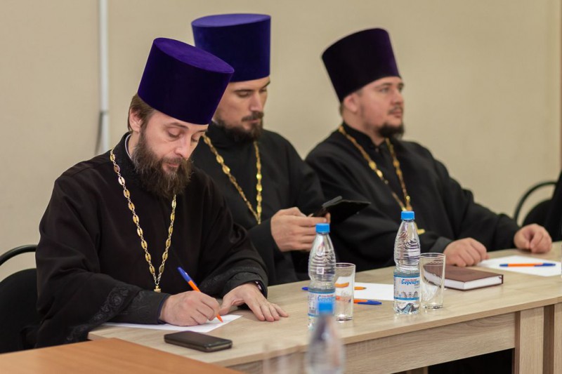 Председатель епархиального отдела религиозного образования и катехизации,благочинный приходов Александровск - Грушевского и Нижнедонского округов протоиерей Сергей Яценко, глава Администрации Бессергеневского сельского поселения Октябрьского района, атаман Нижнедонского казачьего юрта Гудков Анатолий Михайлович и заведующий сектором по казачеству и связям с общественными организациями отдела социально-политических коммуникаций Администрации Октябрьского района Александр Филиппович Голощапов приняли участие в третьем этапе казачьего направления региональных Рождественских образовательных чтений «Церковь и казачество: пути воцерковления и сотрудничества».