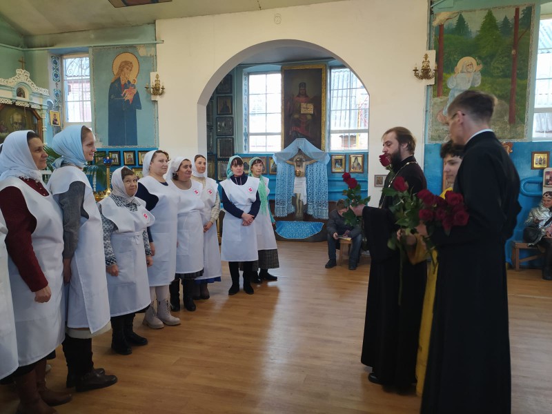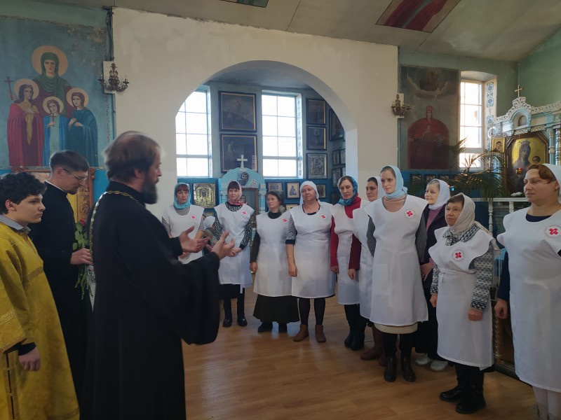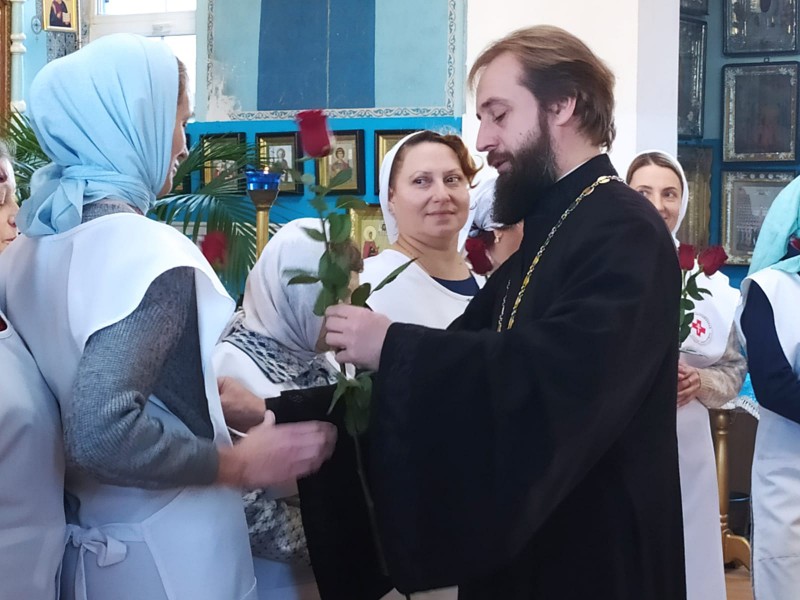Духовник Марфо - Мариинского Сестричества при храме Архистратига Михаила п. Каменоломни Октябрьского района, благочинный приходов Нижнедонского округа протоиерей Сергий Яценко, обратился к сестёрам милосердия со словами благодарности за их труд в оказании помощи людям попавшим в тяжёлые жизненные ситуации, поздравил с Международным днем добровольца и пожелал помощи Божией в благородном служении ближним.
