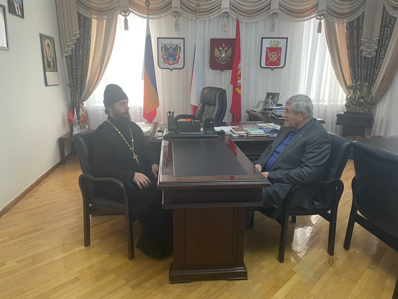 В Администрации Октябрьского района состоялась рабочая встреча Главы Октябрьского района Евгения Петровича Луганцева и благочинного приходов Нижнедонского округа протоиерея Сергия Яценко. В ходе встречи были рассмотрены рабочие вопросы дальнейшей реализации намеченых задач на предстоящий 2023 год и совместное участие Нижнедонского благочиния в запланированных в Октябрьском районе мероприятиях, обсуждение которых прошло при встрече Главы Октябрьского района с управляющим Шахтинской епархией, епископом Шахтинским и Миллеровским Симоном.
