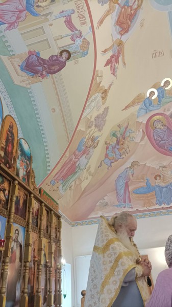 После завершения первого этапа росписи подкупольной, после Богослужения настоятель прихода иеромонах Николай (Намётышев), выразил слова благодарности всем благодетелям, усилиями которых осуществляется благоукрашение храма.