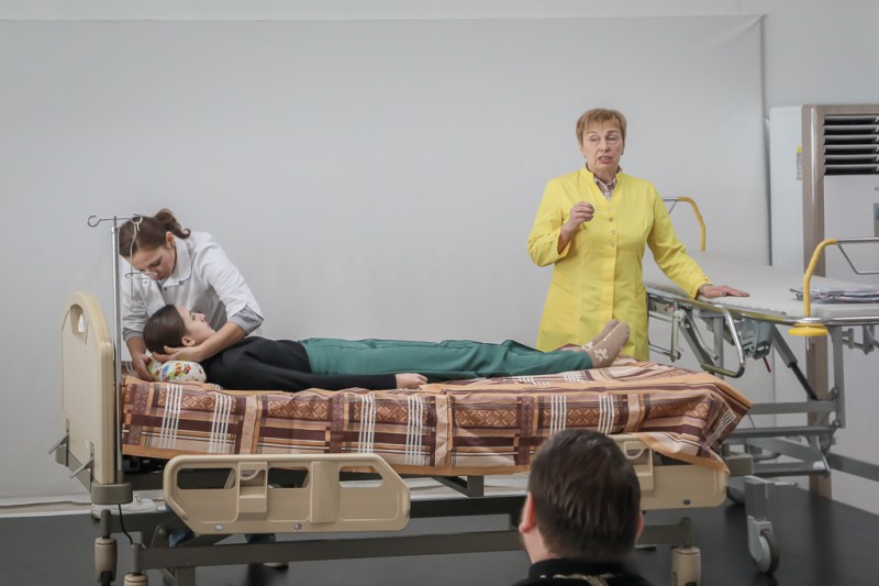 Далее слушателей познакомили с основными понятиями медицины чрезвычайных ситуаций, с психологическими особенностями взаимодействия с людьми в стрессе. Собравшимся предоставили возможность проработать применение навыков ухода за лежачими больными на практике: по их кормлению, перемещению, бинтованию, выполнению гигиенических процедур.