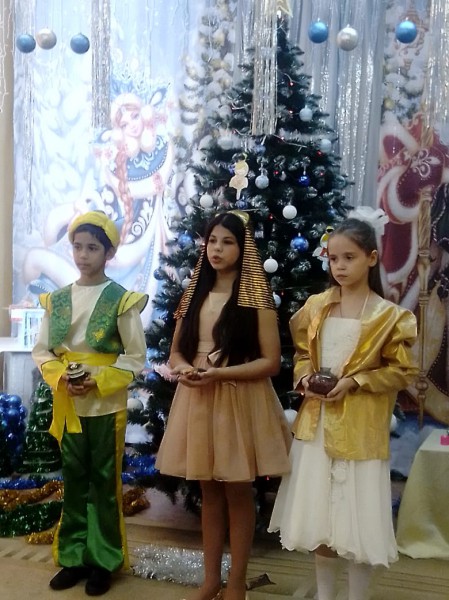 В празднике вместе с детьми участвовали и сказочные персонажи, которых представляли старшие ребята из воскресной школы, а так же культ - организатор районного Дворца культуры Онищенко Е.Ю.Театрализованное представление сопровождалось рождественскими стихами, песнями, конкурсами.