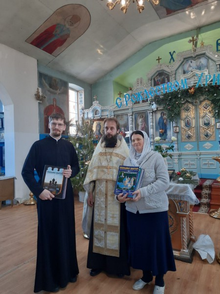 Поздравил с великим праздником Рождества Христова, подарим ребятам сладкие подарки и передал в школьную библиотеку детскую литературно-художественную и научно-популярную литературу о храмах и монастыря Православной Церкви.
