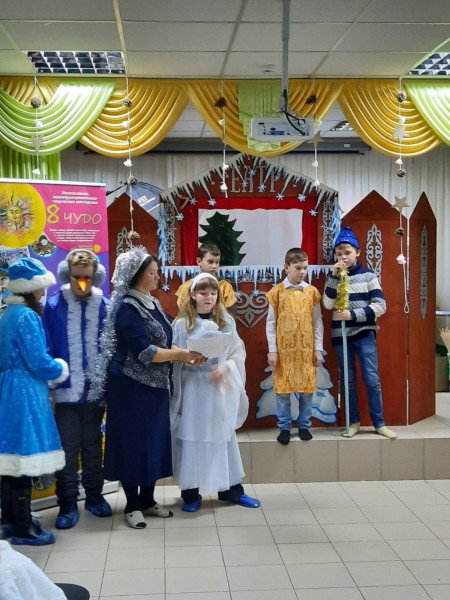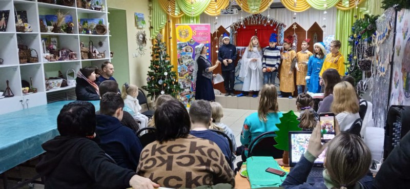Учащиеся церковно- приходской воскресной школы "Благовест" храма Архистратига Михаила п. Каменоломни поздравили с Рождеством Христовым и святочными днями ребят автономной некоммерческой организации содействия социальной адаптации детей-инвалидов "Мир один для всех" Октябрьского района.