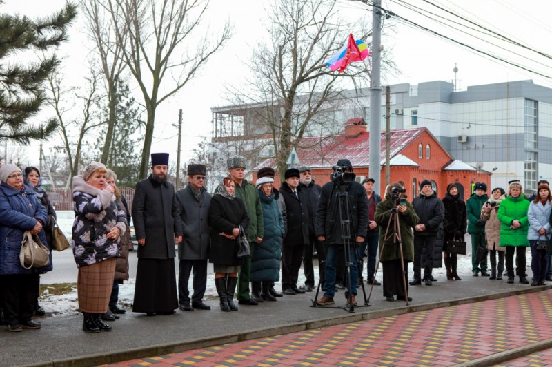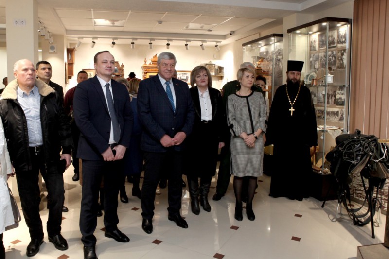 На торжественном открытии присутствовали: Председатель Собрания депутатов – глава Октябрьского района Евгений Луганцев, глава Администрации Октябрьского района Людмила Овчиева, заместитель министра культуры Ростовской области Андрей Молодшев, начальник Управления записи актов гражданского состояния Ольга Исаенко, член Союза художников, Союза дизайнеров России, архитектор Юрий Бессмертный, благочинный приходов Нижнедонского округа протоиерей Сергий Яценко, военный комиссар г. Шахты и Октябрьского района Иван Вансович, руководитель Ростовского отделения Императорского Православного Палестинского Общества Людмила Лимаренко, секретарь Ростовского отделения ИППО, древлехранитель Шахтинской епархии, старший преподаватель ИСОиП (филиала) ДГТУ в г. Шахты Илья Шарков, действительные члены ИППО, жители района.