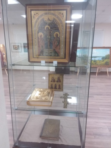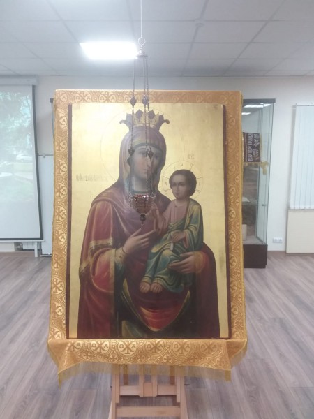 Центральным предметом выставки и главной её святыней стала храмовая икона Иверской Божией Матери, написанная в последней четверти XIX столетия в русской келлии Святителя Николая на Святой Афонской Горе и имеющая зримые следы обильного мироточения. Святой образ предоставлен на выставку одним из храмов Нижнедонского благочиния.