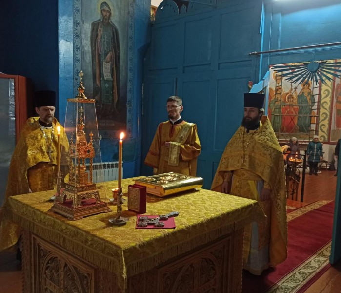 По окончании службы протоиерей Сергий обратился к прихожанам со словами проповеди, в которой рассказал о жизни и подвигах святителя Алекия, и поздравил настоятеля и прихожан с престольным днём.