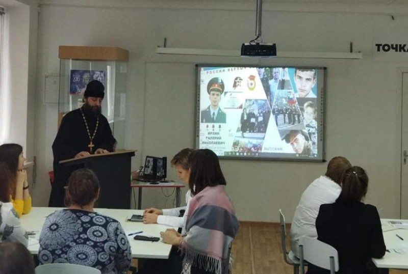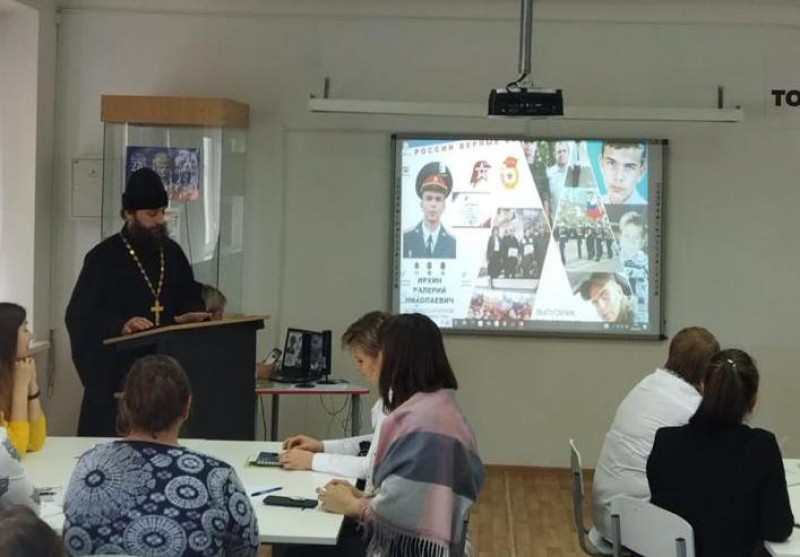 На базе МБОУ СОШ № 23 п. Красногорняцкий Октябрьского района состоялся семинар заместителей директоров по учебно-воспитательной работе по теме «Гражданское и военно-патриотическое воспитание обучающихся как основа нравственного вектора в образовании». В мероприятии принял участие благочинный приходов Нижнедонского округа протоиерей Сергий Яценко.