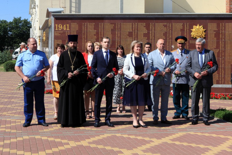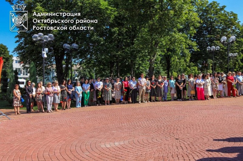22 июня, в День памяти и скорби, Председатель Собрания депутатов-глава Октябрьского района Е.П. Луганцев, глава Администрации Октябрьского района Л.В.Овчиева, председатель комитета Общероссийского конгресса муниципальных образований по муниципально-частному партнерству Алексей Кобилев, благочинный приходов Александровск-Грушевского и Нижнедонского округов протоиерей Сергий Яценко, депутат городской думы города Шахты Аркадий Горцевской, представители общественных организаций, жители района, юнармейцы, военнослужащие 150-й мотострелковой дивизии приняли участие в церемонии возложения цветов и венков в п. Каменоломни на площади 50-летия Победы к Вечному огню, мемориалах «Аллея героев» и «Воинам Великой Отечественной войны».