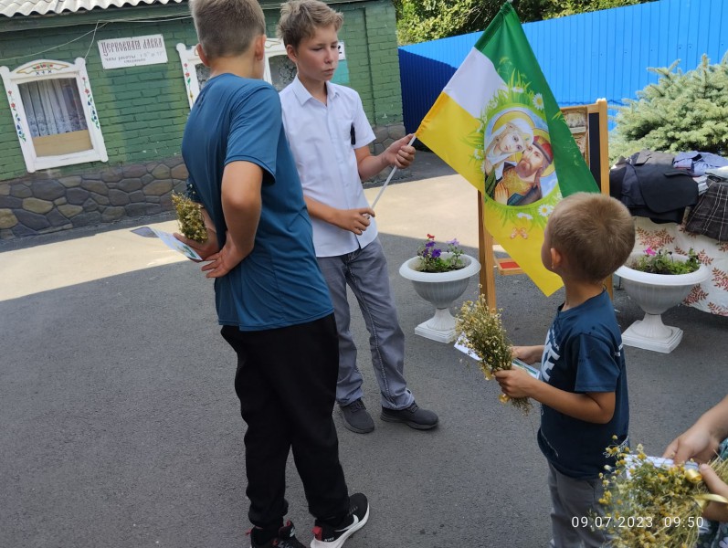 К празднику дети подготовили и оформили для прихожан фотозону и подарили прихожанам храма букеты цветов.