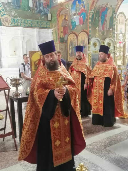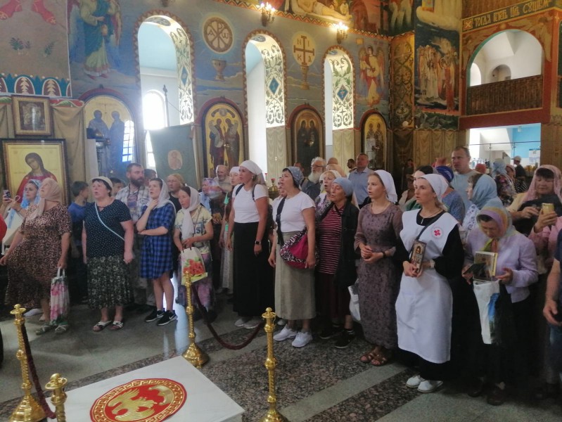 На Соборной площади крестоходцев встречали колокольным звоном. В Покровском кафедральном соборе состоялся торжественный молебен, который совершили благочинный приходов Александровск - Грушевского и Нижнедонского округов протоиерей Сергий Яценко, настоятель Никольского храма г. Шахты иерей Иоанн Трофимов, настоятель храма в честь иконы Божией Матери Одигитрия пос. Таловый иерей Андрей Ковалев и клирик Покровского кафедрального собора г. Шахты протоиерей Роман Бирюков.
