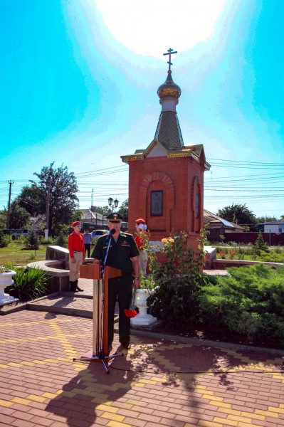Благочинный приходов Нижнедонского округа протоиерей Сергий Яценко совершил панихиду о погибших войнов и обратился к участникам мероприятия с пастырским словом.