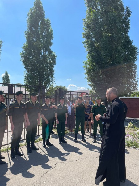 Настоятель храма иерей Сергий Липень совершил молебен перед образом "Донской" иконы Пресвятой Богородицы и обратился к военнослужащим с пастырским, в котором сказал: