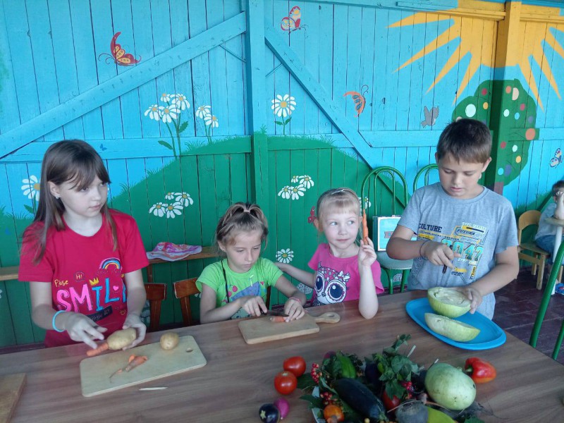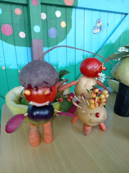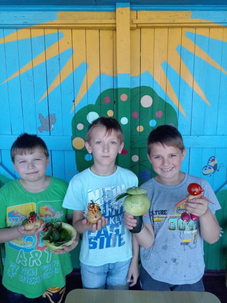 В завершении встречи, воспитатели подготовили для детей познавательно - игровую программу о традициях русской народной культуры. Ребята, при помощи воспитателей, сделали своими руками к празднику поделки из овощей и фруктов, и организовали выставку.
