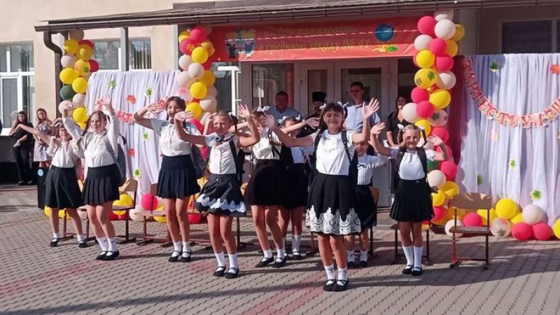 Утро в школе началось традиционной линейкой, первым звонком и морем цветов.