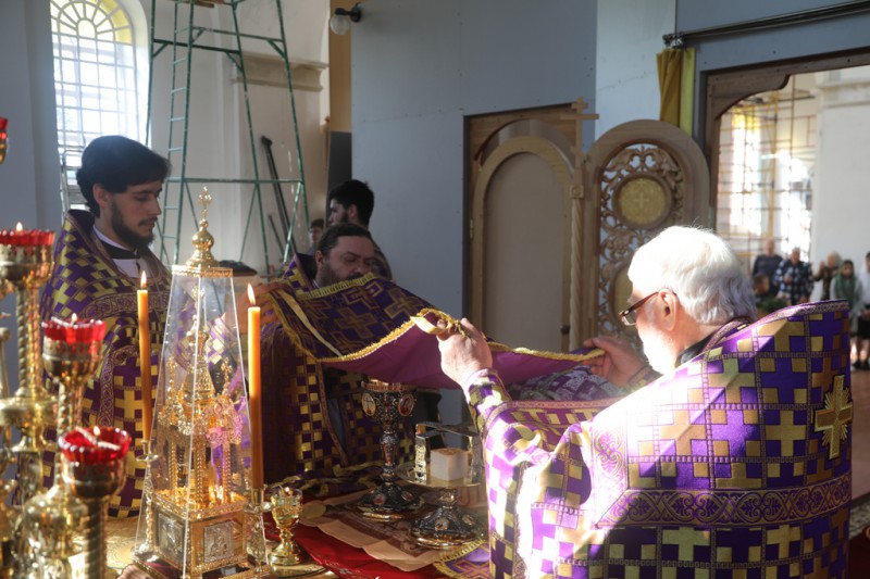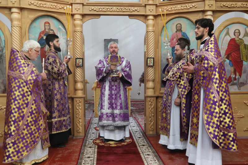 Его Преосвященству сослужили настоятель храма протоиерей Константин Федосеев, клирик храма протоиерей Петр Почтовый, иерей Михаил Дубянский и диакон Трофим Осяк.