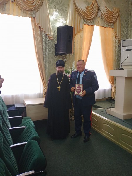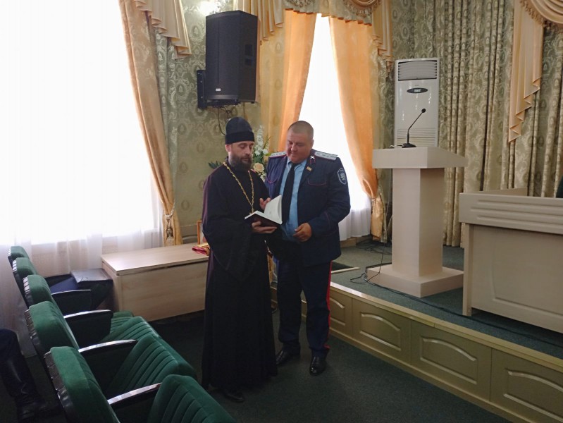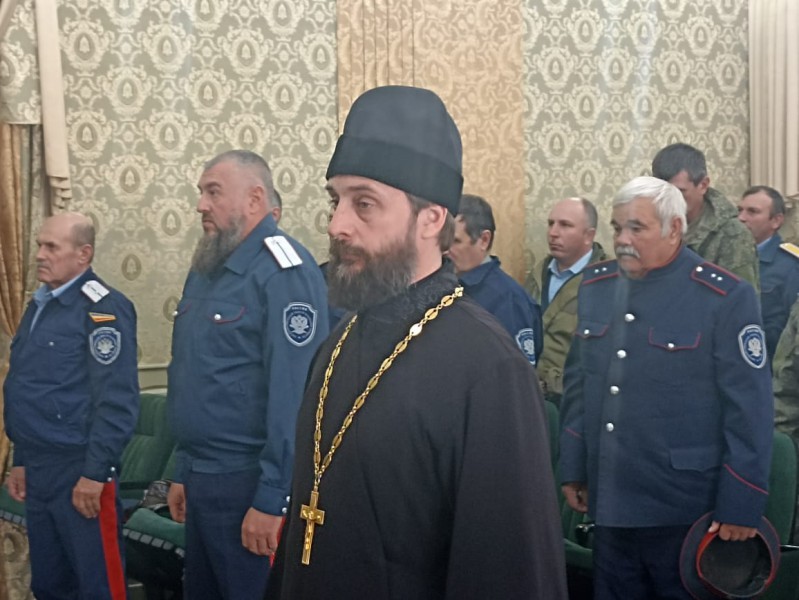 В завершении работы Круга с напутственным пастырским словом к казакам обратился духовник Юрта протоиерей Сергий. В своём слове священник напутствовал избранного атамана быть достойным продолжателем лучших традиций Донского казачества, преподнёс в дар Святое Писание, напомнил, что Слово Божие – это не только информация к размышлению, а руководство к действию и пожелал успешного служения родному Отечеству.