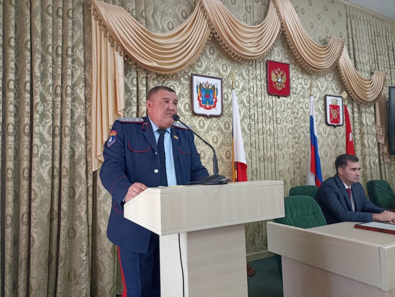 Далее, юртовой атаман Анатолий Гудков отчитался об итогах своей деятельности за период с 2019 по 2023 гг. Доклад включал в себя информацию по всем направлениям работы казачьих обществ: молодежь и взаимодействие с Православной Церковью, охрана окружающей среды и работа с призывниками, участие казаков в охране правопорядка.