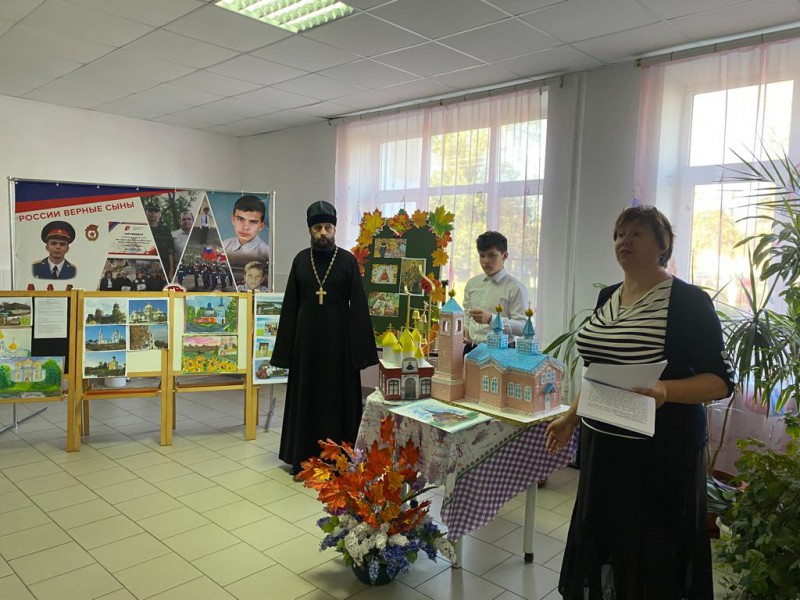 Учитель ОДНКНР Козина Н.В. рассказала ребятам о храмах в честь Покрова Пресвятой Богородицы, в том числе о тех, которые расположены на территории Октябрьского района. На уроке были представлены макеты православных храмов, которые сделали учащиеся общеобразовательных учреждений в преддверии юбилейных мероприятий к 85-летию со дня образования Октябрьского района «Храмы моей малой Родины».
