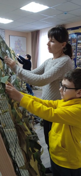 Все вместе делают большое доброе дело. В каждую ячейку маскировочной сети вплетается детскими руками доброта, забота и любовь для наших солдат.